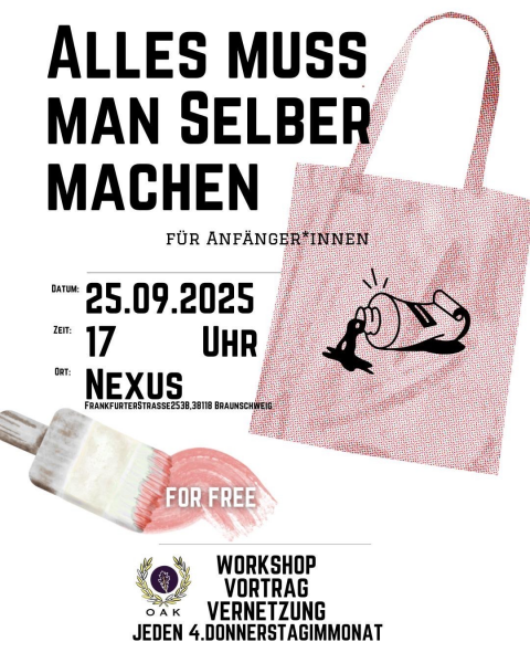 Am 25.09.2025 um 17 Uhr im @dasnexusbraunschweig wollen wir mit euch gemeinsam Buttons und Schablonen basteln. Wir wollen darüber sprechen, wie man Schablonen am besten nutzt und worauf man achten sollte.