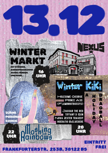 Am Freitag, den 13. Dezember, lädt das Kulturzentrum Nexus ab 16 Uhr zur Winterfeierei ein – ein solidarischer Treffpunkt für alle, die Lust auf politische Inhalte, handgemachte Kunst, gutes Essen und queere Kultur haben.