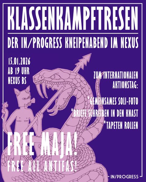 Unser offener Kneipenabend fällt zu Beginn des Jahres auf den 15. Januar – der internationale Aktionstag für die Solidarität mit Maja und allen angeklagten Antifaschist*innen!