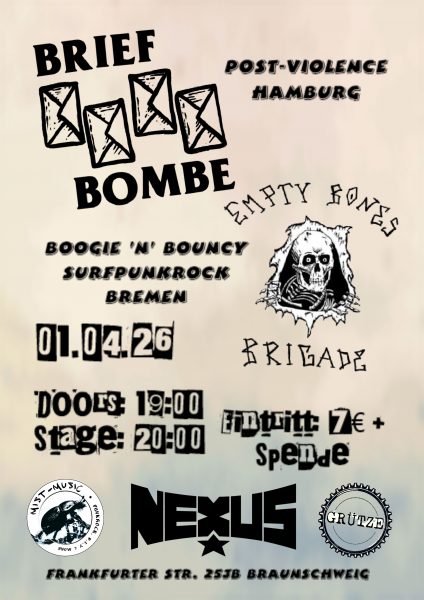 BRIEFBOMBE ist eine (mail-fronted) Postpunkband aus Hamburg. Ihre 20 Sekunden bis 1 Minute langen Hardcorepunk / Fastcore Songs behandeln Post- und Paketdienstleistungsthemen. Solidarische Grüße gehen raus an alle streikenden Kolleg*innen bei DHL, Amazon und Konsorten. Streik, Sabotage, langfristig Enteignung!