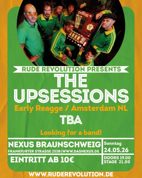 Am Pfingstsonntag bringt das Nexus Braunschweig den Sound der frühen Reggae-Ära zurück auf die Bühne: The Upsessions aus den Niederlanden sind bekannt für ihren unverwechselbaren Mix aus Early Reggae, Rocksteady und Ska, inspiriert von den 60er-Jahren in Kingston. Seit ihrer Gründung 2005 haben sie sich als eine der führenden europäischen Bands für authentischen Vintage-Reggae etabliert. Legendär sind ihre Alben Beat You Reggae und Shake It! Mit scharfem Bläsersatz, treibenden Rhythmen und einer ordentlichen Portion Humor liefern sie Shows, die nicht nur musikalisch sondern auch politisch: Antifaschistisch und antirassistisch.